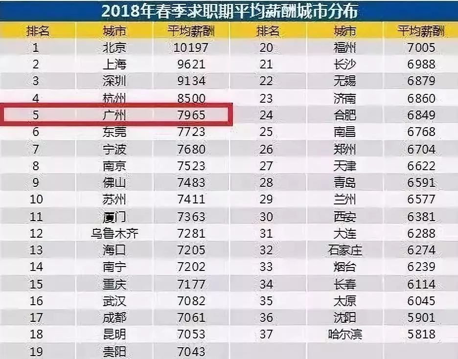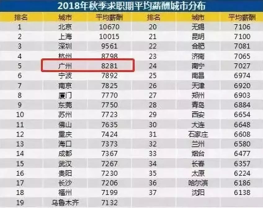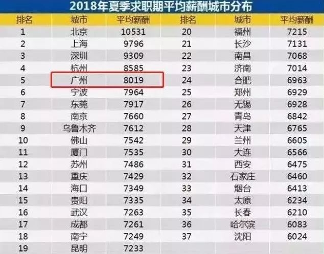 报告中显示广州的平均工资是...