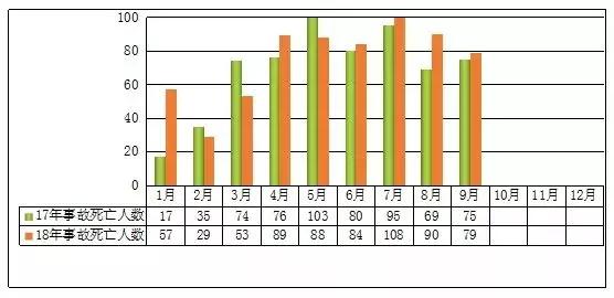 图2 2018年前三季度事故死亡人数与2017年同期对比