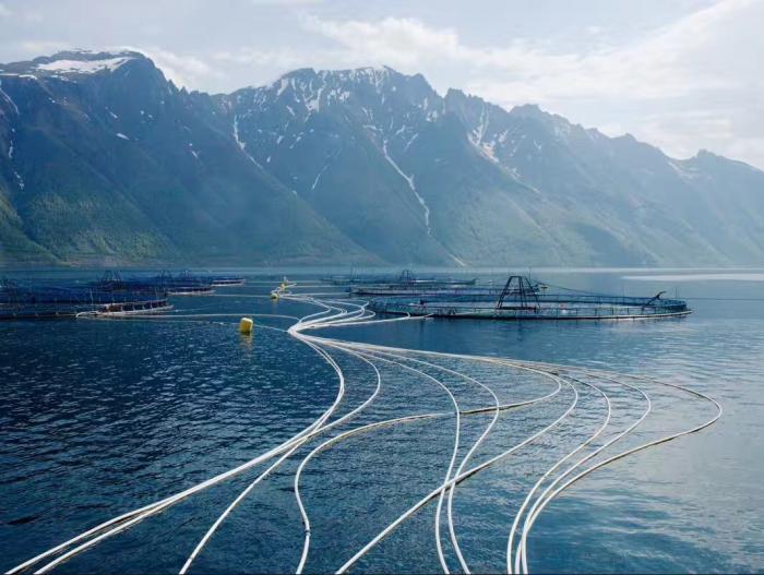 三文鱼养殖场坐落在来自于南极水质清澈的近远海处。每个养殖场设有不同数量的养殖网箱,通常一个养殖场的产量约100万条/年,每个网箱里养40000条鱼。在养殖场工作的人们通常是上班10天,再轮休4天。由于养殖场靠近南极,远离大陆且气候寒冷,他们依靠卫星通讯与大陆联系。这些养殖场是三文鱼加工厂的上游链条,三文鱼产业链前端包括鱼卵繁殖、淡水养殖、海水养殖以及渔业加工四个阶段。