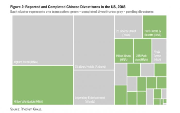 (中资2018年在美国的投资退出,绿色块状:已完成退出 灰色:待完成退出 来源:荣鼎报告)