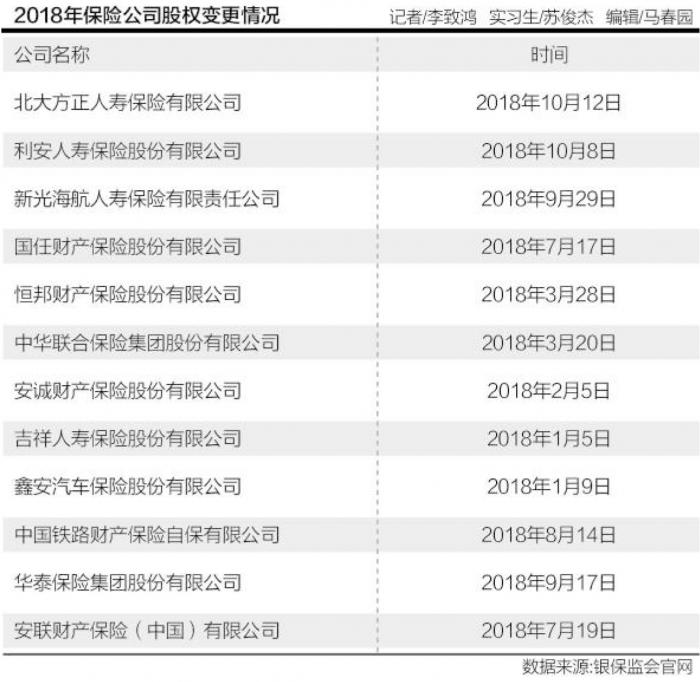 2018年保险公司股东来来往往。