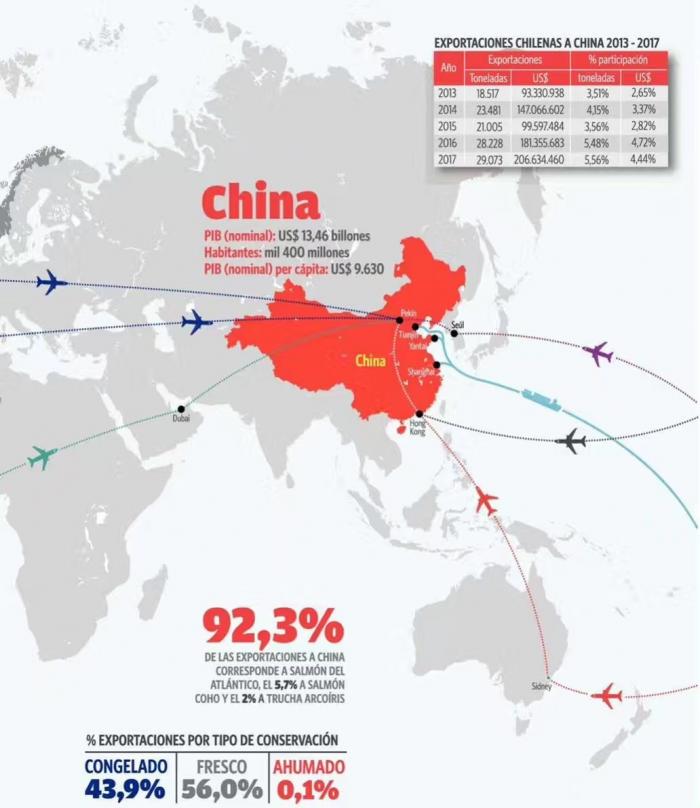 根据智利官方与非官方预测,2025年前中国进口智利三文鱼将超过40万吨。对智利三文鱼生产者来说,增加三文鱼向中国出口的最大挑战是如何减少运输时间、保证质量,为中国消费者提供优质三文鱼。