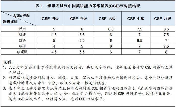 雅思考试与中国英语能力等级量表(CSE)对接标准如下: