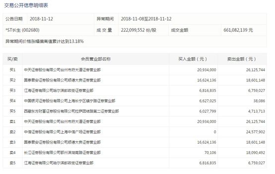 不过,在8月30日打开跌停后,成交量显著放大。在11月5日再次复牌后,公司股价逐渐开始改变跌势,并上演连续涨停。深交所11月13日表示,从交易情况看,恒立实业、*ST长生当时的连续上涨期间交易以个人投资者为主,投机炒作特征明显,个人投资者买入占比均超过97%,卖出占比也在90%以上。游资大户群体性炒作,中小散户跟风,交易居前账户持股时间短,平均1-2天,短线交易特征明显。