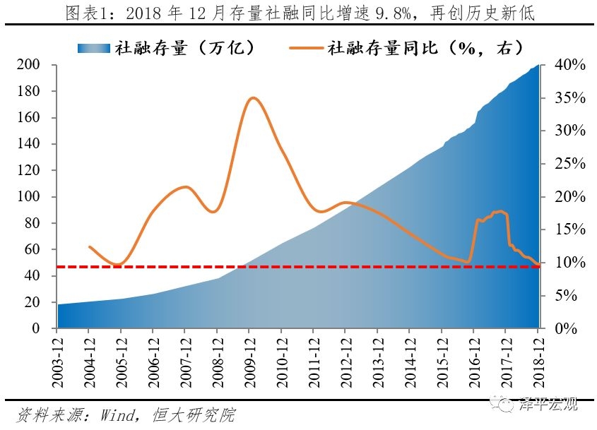 实体融资形势仍紧,社融延续下滑趋势。12月新增社会融资规模15.9万亿元,较预期多增2.9万亿元,与去年同期基本持平。然而社融存量持续下行,12月社融同比9.8%,较11月下降0.1个百分点,连续14个月下滑,再创历史新低。