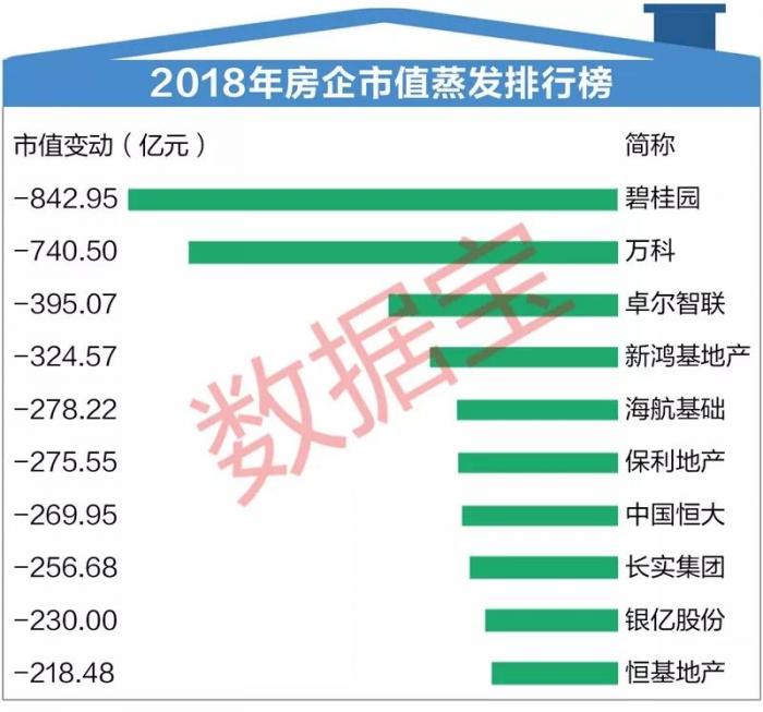 具体到个股方面,碧桂园市值去年全年缩水达到843亿元,成为市值缩水最多的房企。万科市值缩水位居第二位,达到741亿元。此外,卓尔智联、新鸿基地产、海航基础等9家房企市值缩水超过200亿元,新湖中宝、ST新光、华侨城A等21家房企市值缩水超过百亿元。14家房企去年市值增长超过百亿元,华润置地增加495亿元居首,中国海外发展增长279亿元位居次席。