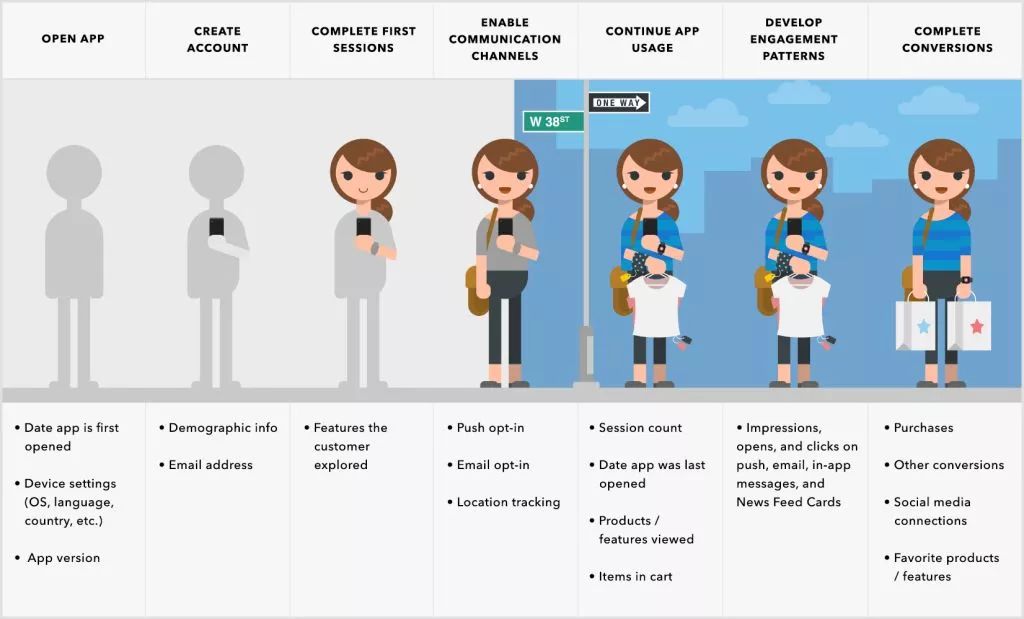 这幅插图形象地说明了用户画像是如何随着用户的使用行为被逐步构建出来的。图/《braze》杂志