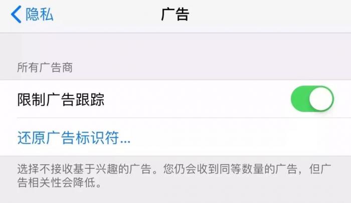 iPhone 的隐私设置中可以还原广告标识符。