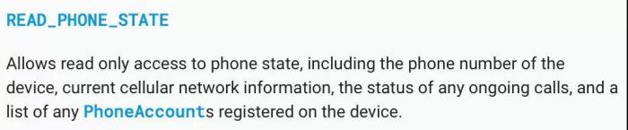 Android目前则还是以IMEI为主。要获取这个设备号,App需要向用户申请“READ_PHONE _STATE”的权限。在Android6.0版本之前,这项权限通常默认开启,现在随着版本升级,用户也可以选择关闭。