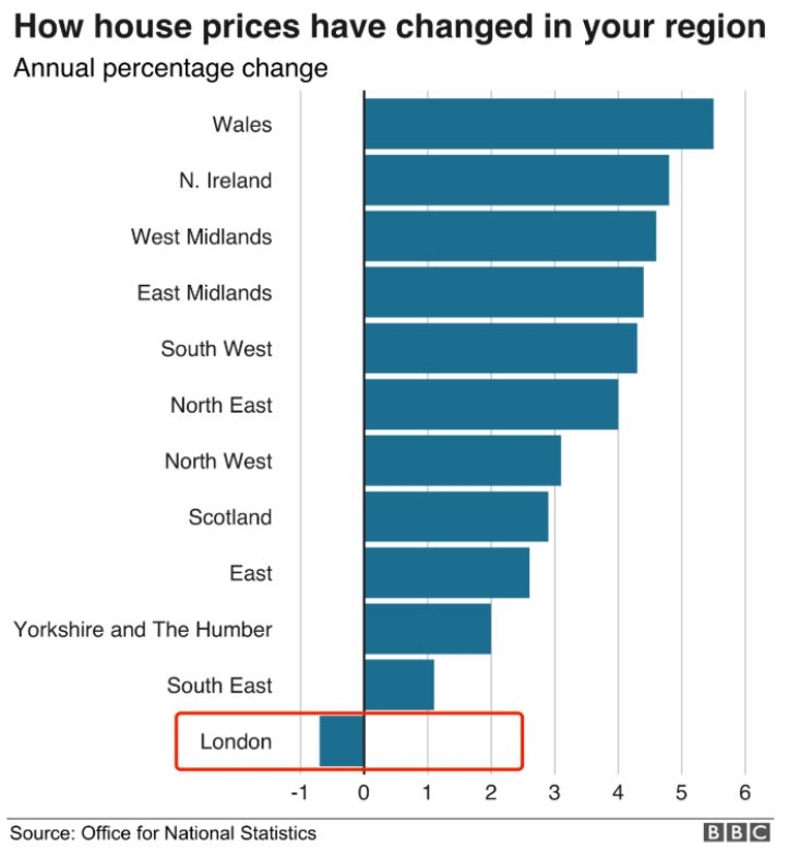 就连伦敦这个欧洲的金融中心、全球富豪扎堆的地方,也没能逃过英国房价下跌的“魔掌”。但近期受英国“无协议脱欧”风险,印花税上涨以及英央行加息等因素影响,伦敦楼市陷入低迷,成交量大幅下降。