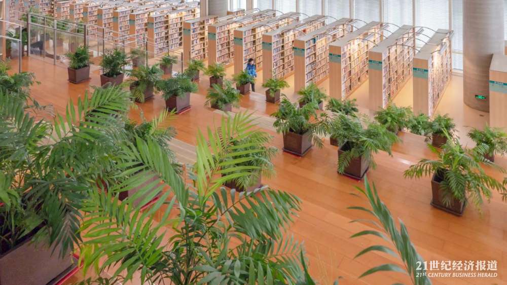 升级后的浦东图书馆“空中花园”搬进了馆内,5米挑空区域不封顶敞开式设计,让读者可以在里面散步、阅读,犹如在大自然中。