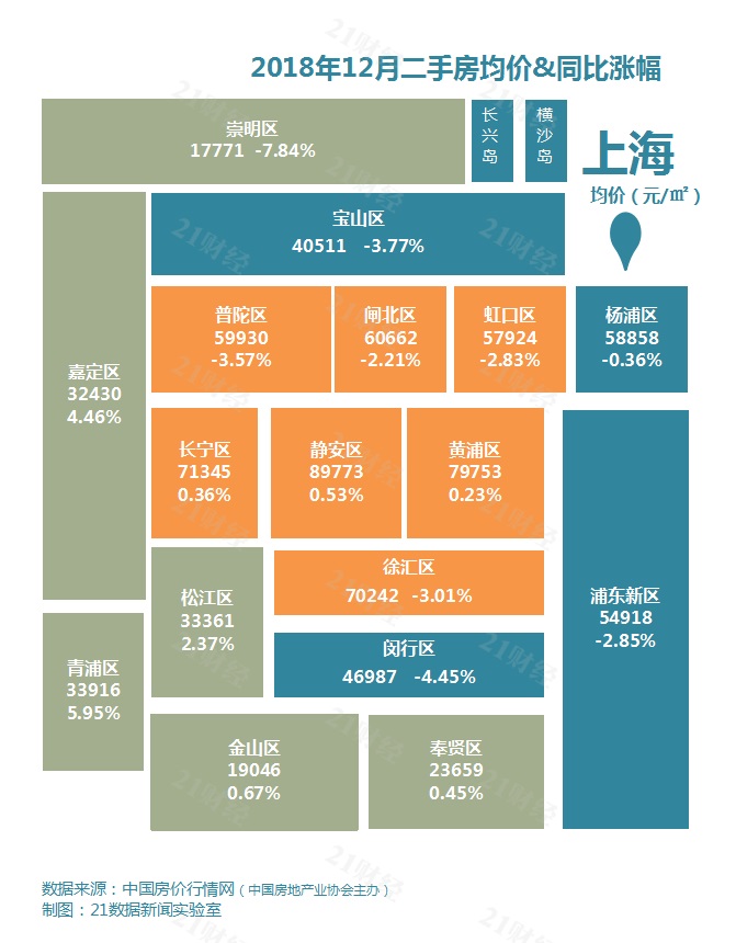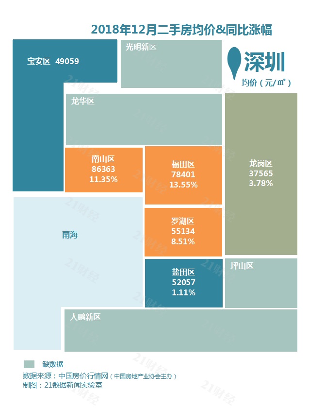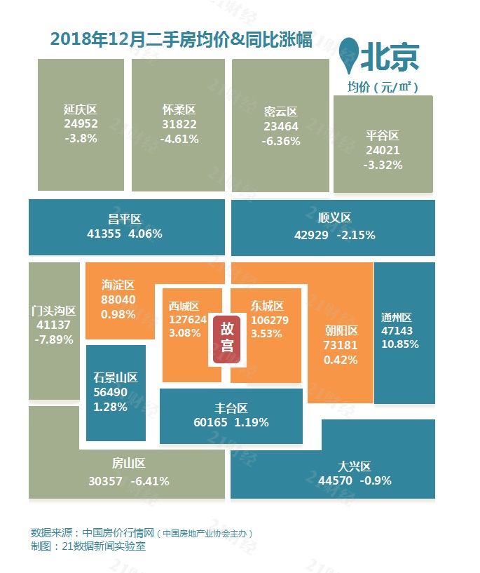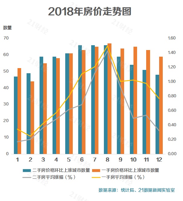 近日,国家统计局发布了2018年12月份70个大中城市商品住宅销售价格变动情况统计数据。至此,去年全年各大城市房价的涨跌幅情况已浮出水面。过去一年房价走势如何?各大城市房价都在什么价位?21数据新闻实验室为您一一梳理。