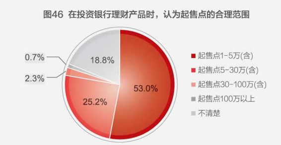 过半家庭银行理财产品 期待的起售点为5万以下,接受5-30万元的起售点家庭占比也有25.2%。
