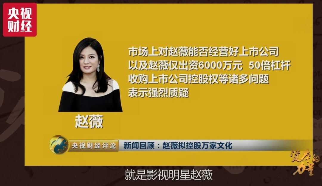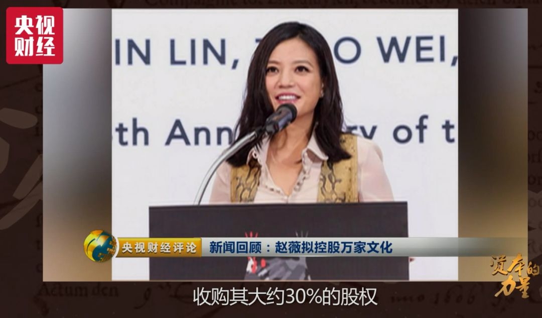 2016年12月,万家文化发布一则公告,龙薇传媒公司将以超过30亿元的价格收购其大约30%的控股股权。而龙薇传媒的大股东就是演员赵薇。公告一经发布,万家文化股价连续涨停。