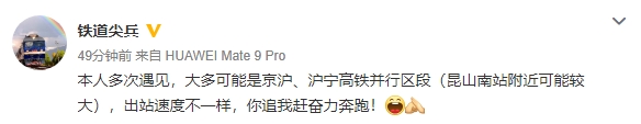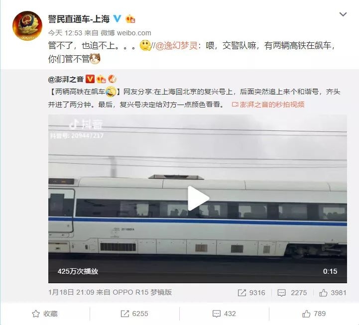 网友们也瞬间化身“戏精”,有调皮网友“报警”交警队吗,有俩高铁在飙车!