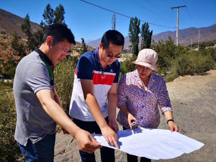 在9月份即将开工的项目施工现场,智利项目经理孙健打开一张施工地图,他说:“实质上这是一个调节水库项目。此地区年降雨量只有50毫米,常年缺水,但这里却是智利‘牛油果之乡’。我们将修建一个70米高、560米长的水坝,拦截棕榈河水,并修建57公里引水渠,引入佩托尔卡河水。”
