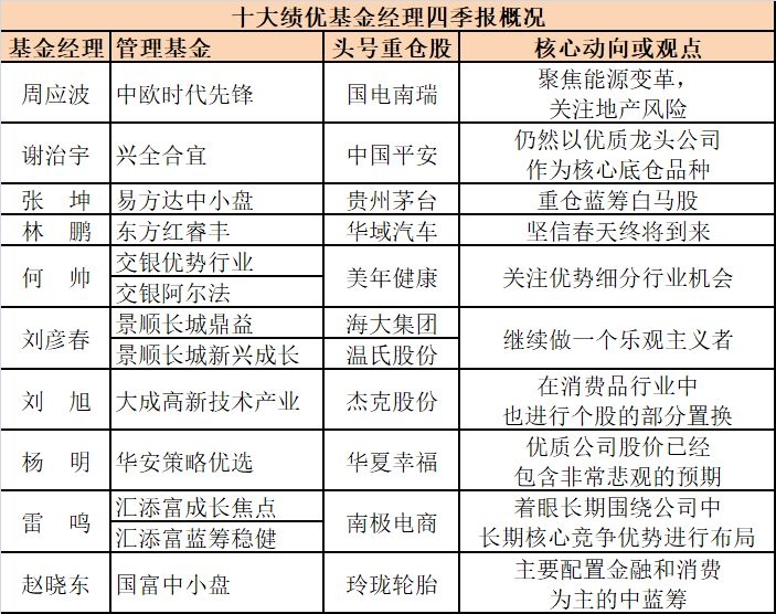 经历了去年股市的大幅下跌,今年以来股市有所企稳反弹。而普通投资者都关心今年股市能否走好,具体应该买什么股票。今天,基金四季报已经全部公布完毕,基金君特意选取了近三年或近五年业绩领先的偏股基金经理四季报,摘取其季报观点和最有参考性的前十大重仓股情况,供投资者参考。
