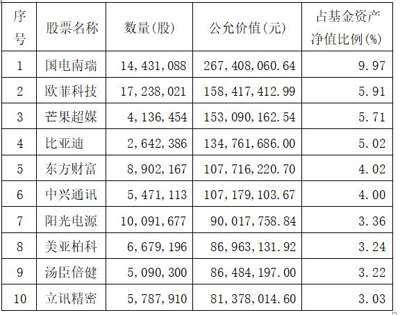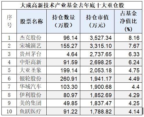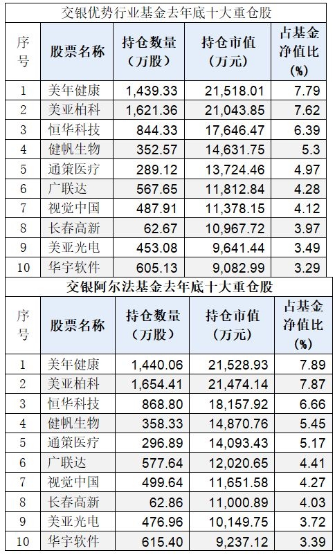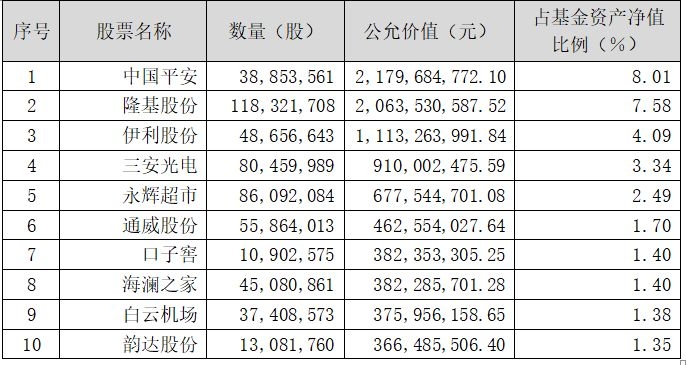 中欧时代先锋去年底十大重仓股