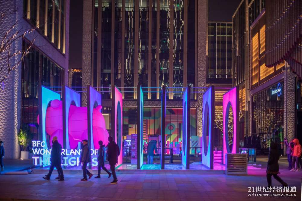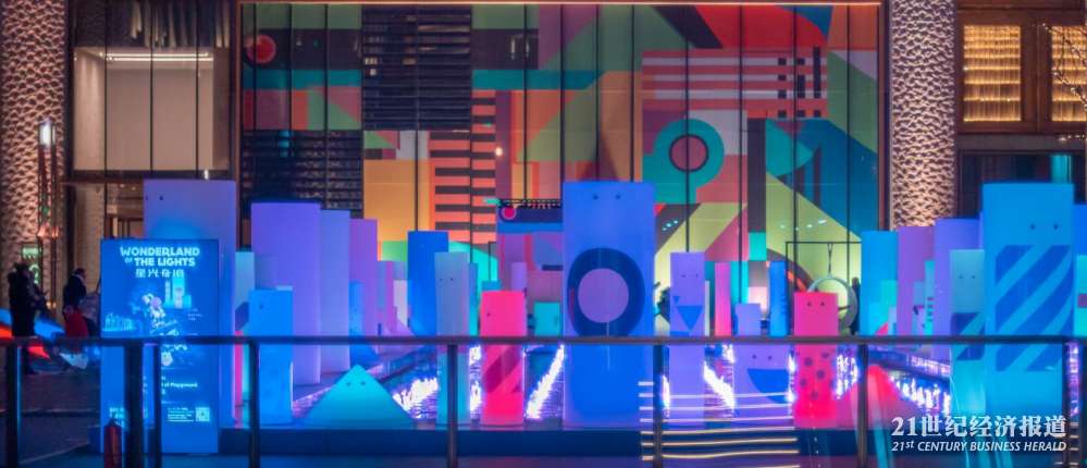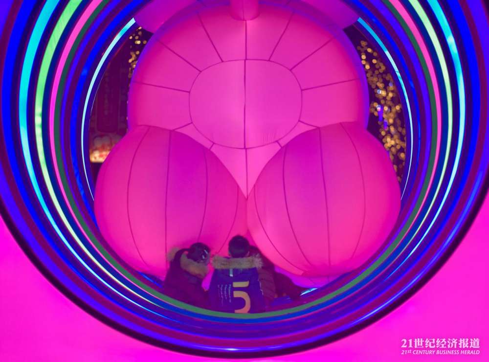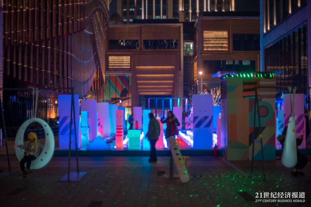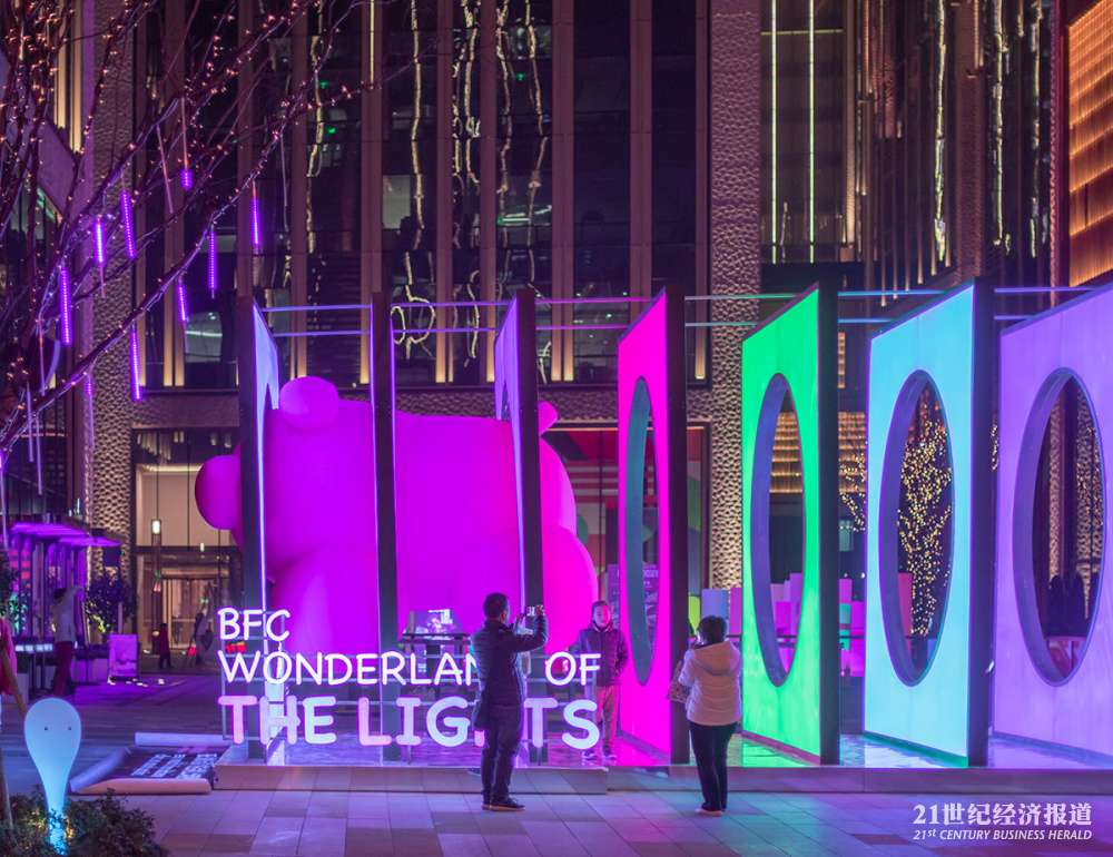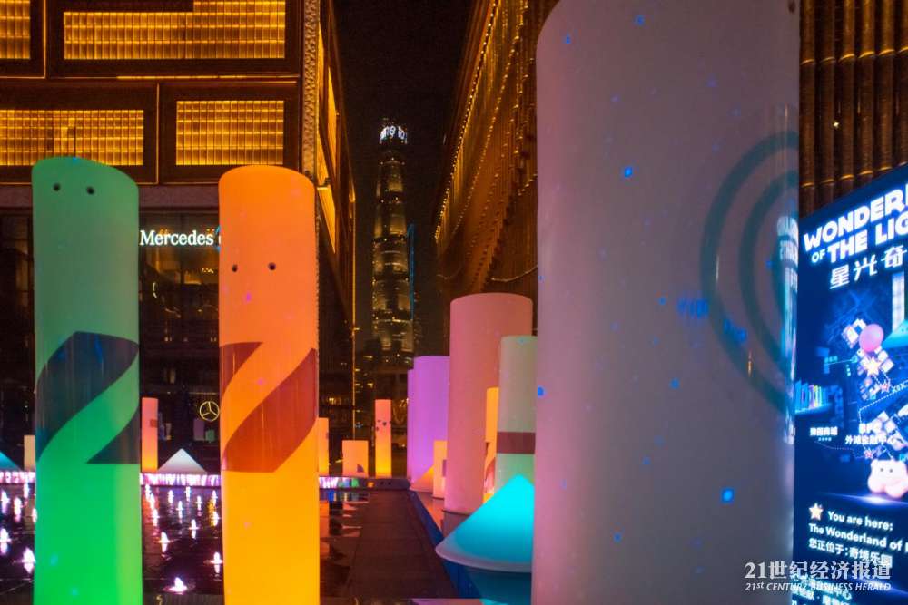 而位于外滩金融中心喷泉广场,则以灯光展为主题部分的“奇境乐园”,各类灯光互动装置让人置身璀璨的星空。