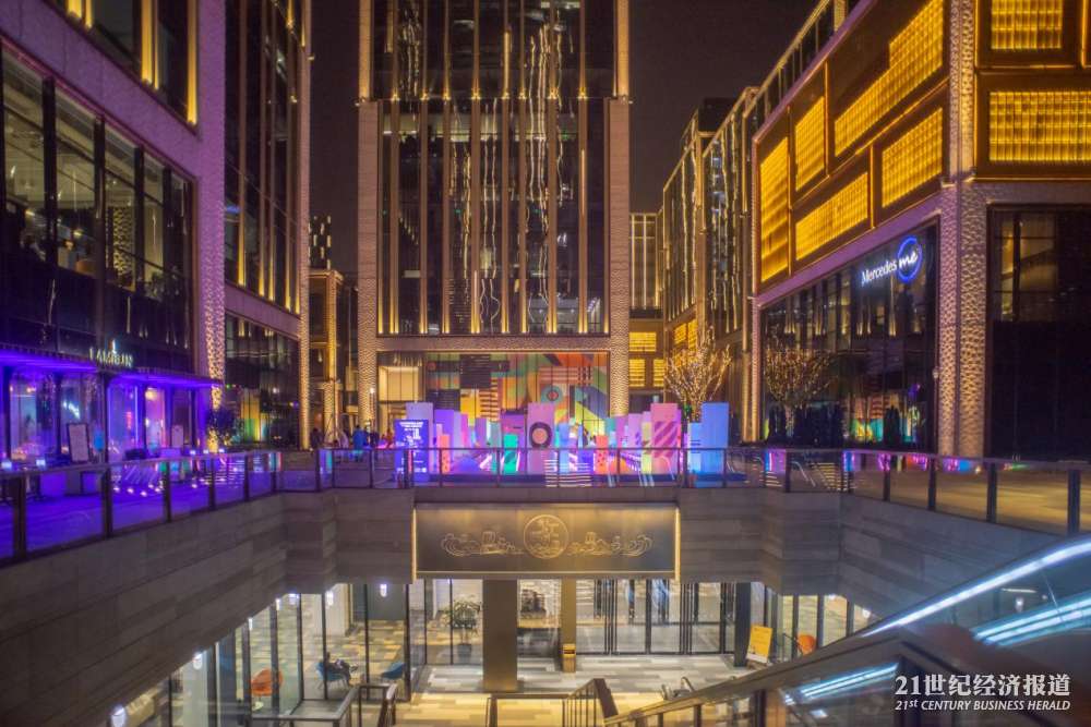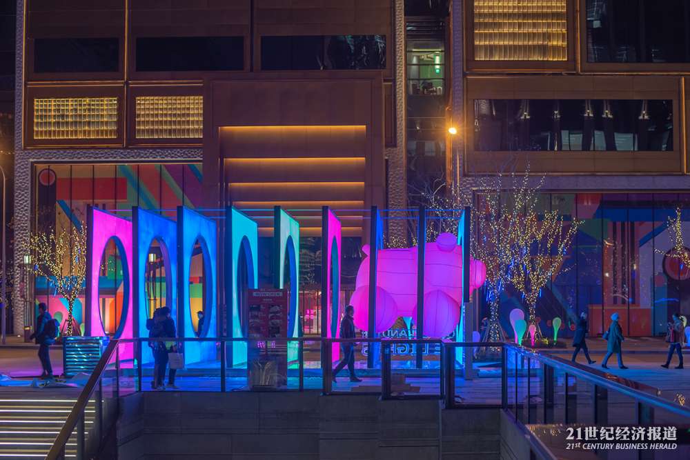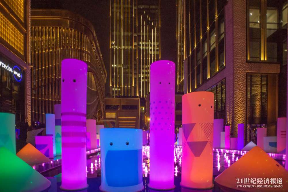 外滩金融中心“星光奇境”中形态憨萌的几何灯光装置。