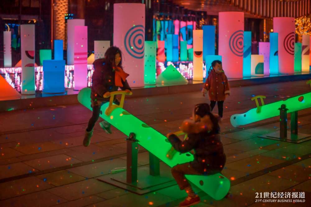 “奇境乐园”成为孩子们的快乐天堂。在色彩斑斓的星光下,跷跷板一上一下,孩子们不时发出咯咯的笑声。