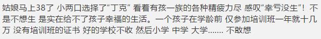 而当别人家的孩子跟着外教在ABC的时候,你忍心让自己的孩子“家里蹲”吗?既然不想让孩子输在起跑线上,又给不了孩子最好的,就干脆不生了!