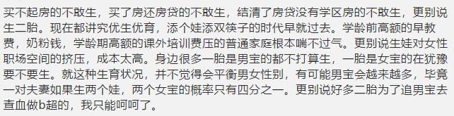 那么,究竟是什么成了他们的“避孕药”?在21世纪经济报道官方微信公众号昨日发布的《“年轻人不爱生孩子”坐实,2018新生儿骤减200万!还有3000多万“剩男”因男女失衡所致?》一文下,收到了大量的读者评论。关于为什么不生娃,他们有话要说……