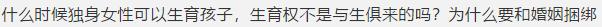 有网友表示,单身找不到对象;还有很多连婚都不想结的朋友,就更别谈及生育了。也有女性指出,希望独生女性也可以生育孩子,不要和婚姻捆绑。