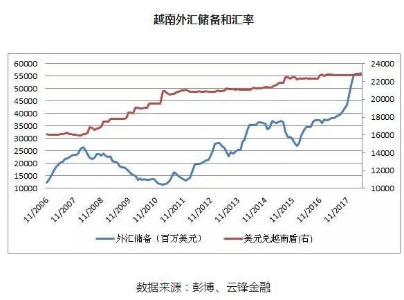 越南采用的是有管理的浮动汇率制度,即货币盯住美元,同时允许汇率在一定范围内浮动,这点与2015年“811”汇改前的人民币汇率制度类似。