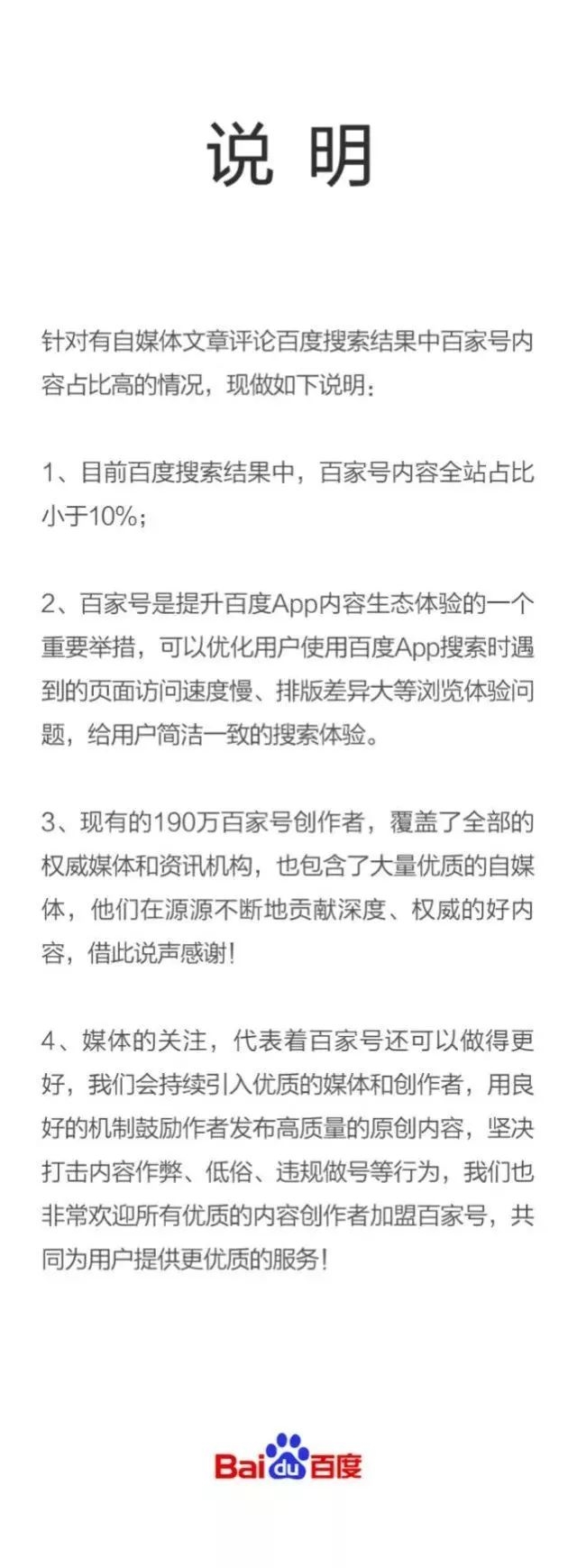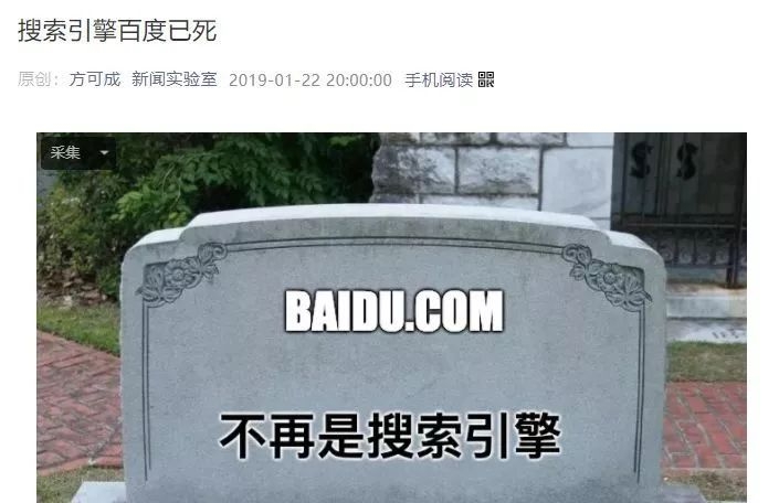 昨日,自媒体新闻实验室一篇名为《搜索引擎百度已死》的文章刷屏。文章指责百度搜索结果一半以上会指向百度自家产品,尤其是百家号,而百家号充斥着大量营销和质量低劣的内容,也导致百度搜索结果的内容质量大幅下滑。