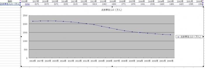 1月23日, 北京市统计局和国家统计局北京调查总队公布数据显示, 2018年末,北京全市常住人口2154.2万人,比上年末下降0.8%,比上一年减少了16.5万。这是1997年以来的常住人口第二次下降。其中2018年末北京15-59岁(劳动年龄人口)常住人口为1562.8万人, 比上一年减少了23.3万。