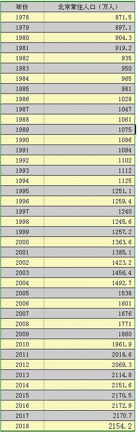 1月23日, 北京市统计局和国家统计局北京调查总队公布的2018年数据显示, 2018年末,北京全市常住人口2154.2万人,比上年末下降0.8%。根据记者了解,相比上一年末,2018年末北京常住人口减少了16.5万。这是1997年以来的常住人口第二次下降。