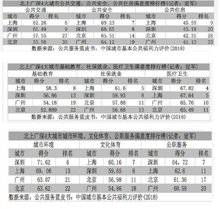 而北京和广州都没进入基本公共服务满意度前十。