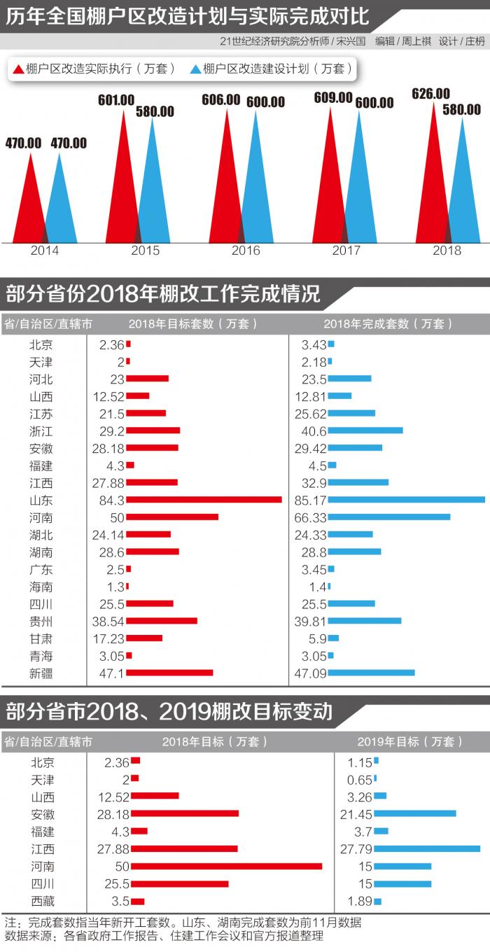 而在中央层面,1月22日,住建部网站公布,2018年,全国各类棚户区改造开工626万套,顺利完成年度580万套的目标任务,完成投资1.74万亿元。