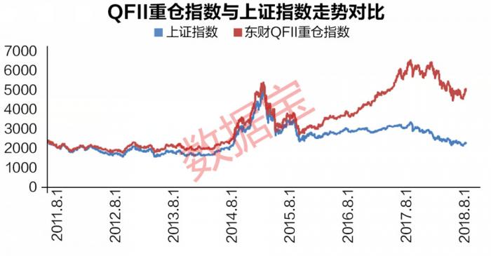 值得一提的是,2015年6月12日沪指创下5178的高点,随后一路震荡下行,而QFII重仓指数短暂回调后再次出现上涨行情,于2018年1月23日再创新高。