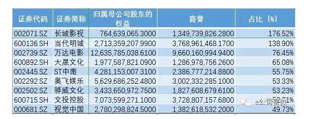 值得注意的是,长城影视和当代明诚商誉占净资产比例高达176.52%和138.9%。