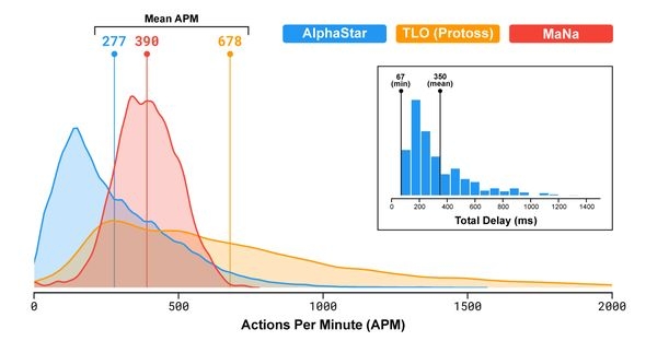 AlphaStar在APM和延迟方面与人类玩家的比较(图片来源:DeepMind博客)
