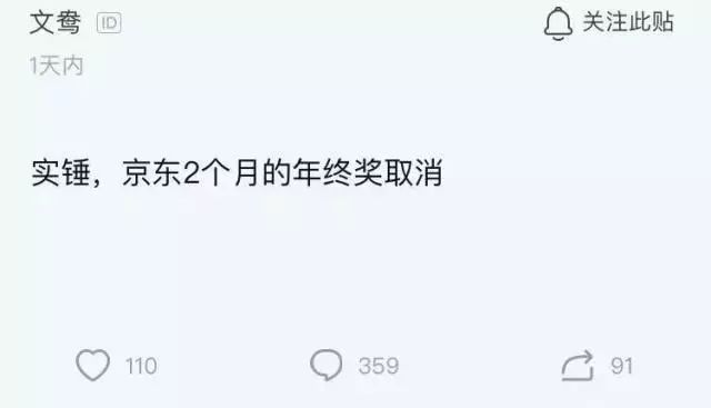 2017年年底京东曾说过,2018年要给每一位员工的年终奖翻倍。然而最近几天,有京东的员工匿名在网上发布消息,说是公司取消了2个月的年终奖。