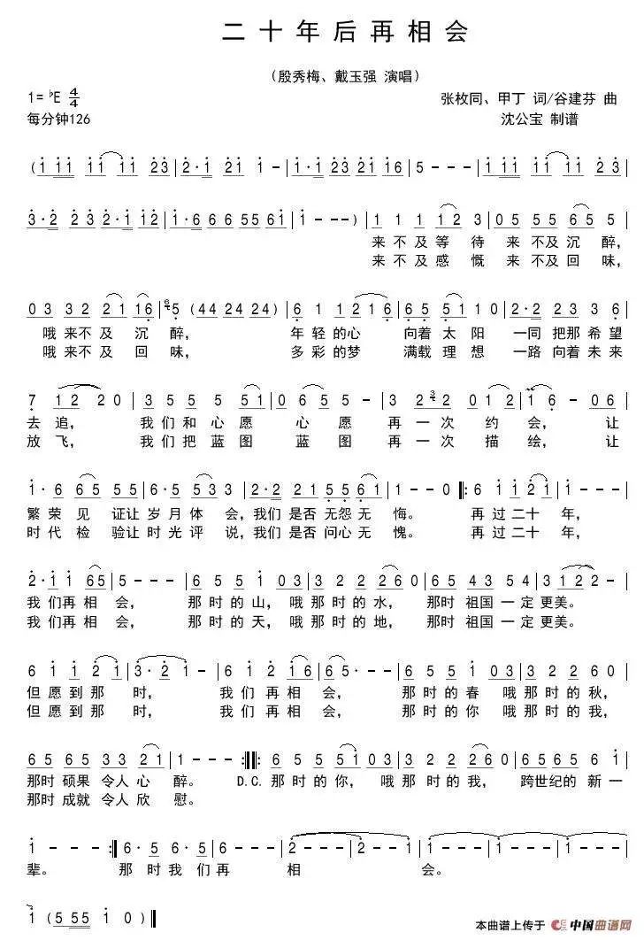 (图为《二十年后再相会》歌谱)