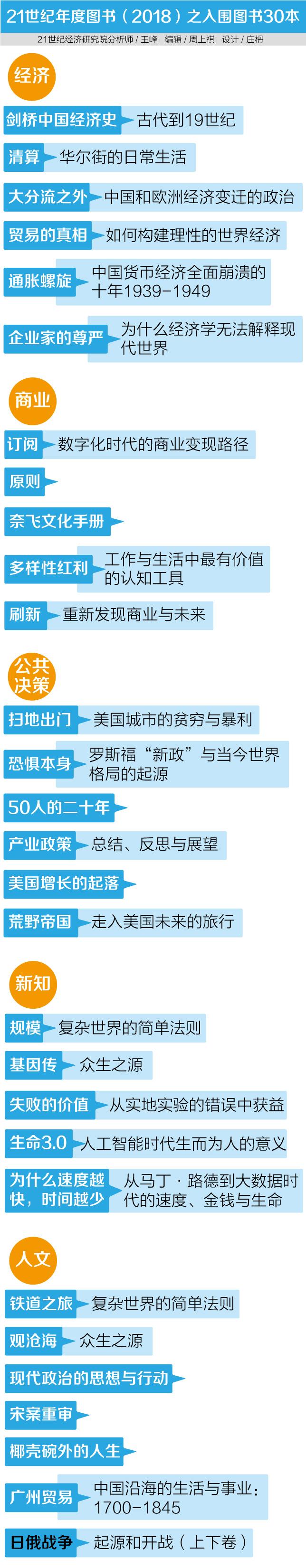 21世纪经济报道、21世纪经济研究院举办的第三届年度好书评选结果日前揭晓。依据“思想价值+现实影响”的评选原则,首先由书评人推荐和出版社自荐相结合的形式,从在2018年首次出版或上市的图书当中选出100本优秀图书作为提名书目;其次,由初评评委选出30本入围书目;最后由学术评委分别独立投票,评选出10本“21世纪年度好书(2018)”。希望这10本好书丰富你的精神世界。