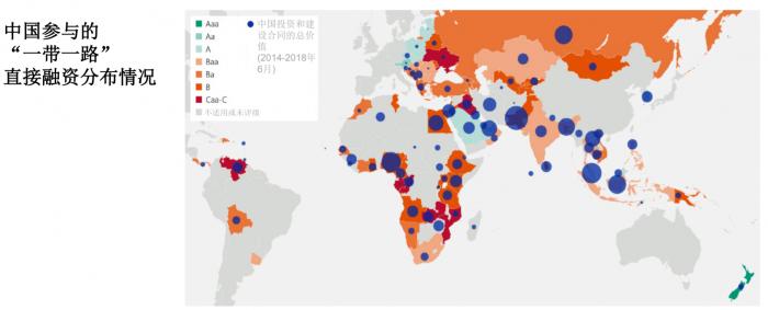 报告显示,截至2018年11月,在115个“一带一路” 成员国中,约75%的国家评级低于投资级别 (Ba或以下) 或不在穆迪评级范围内。2014年至2018年6月,中国在“一带一路” 成员国的直接投资以及中国参与的“一带一路”合同的总价值达5370亿美元,其中只有30%属于投资级别的国家(不含新加坡)。