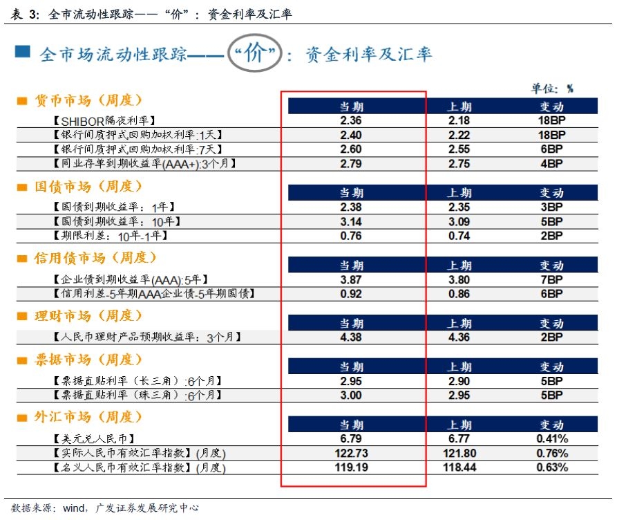 三、全市场流动性跟踪——“价”:资金利率及汇率