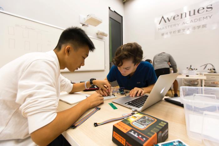 爱文还准备了包罗万象的国际课程和工作坊。“大师学院”项目把学生带到全球大城市,参与当地专家开办的小班研修,学习手艺。2017年冬天,爱文纽约校区的学生就在深圳的近四周学习中,从在电子市场购买元件开始,每人设计和制作出属于自己的一部手机。学生考察当地文化,是为与真实世界共同成长。这种跨学科创新课程说明了爱文对于培养学生现实视角和多学科创新能力的重视。