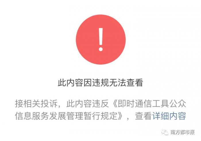 可是今天一大早,很多人又惊讶地发现,这篇文章被微信屏蔽了,原因是“此内容因违规无法查看”。