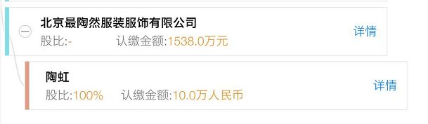 此外最值得关注的是,股东北京最陶然为徐峥夫人陶虹个人100%出资的企业。