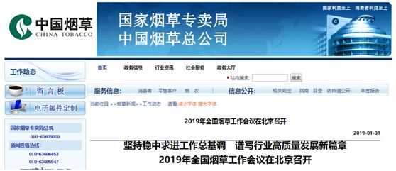 张建民对2019年行业重点工作中提到,推进总公司公司制改革、卷烟营销市场化取向改革、“放管服”改革、“走出去”体制机制改革、用工分配管理改革等,强化科技体制机制创新,完善行业控烟履约机制。