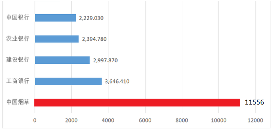 宇宙行老大哥2017年的利润总和位居A股首位,3646.41亿元,但面对中国烟草依旧是小巫见大巫,中国烟草总公司的税利是工商银行2017年利润总额的3倍。