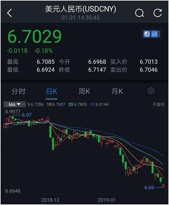 今早(1月31日)开盘人民币兑美元汇率开盘报6.69,不仅突破6.7的关键关口,还创下了去年7月份来新高。