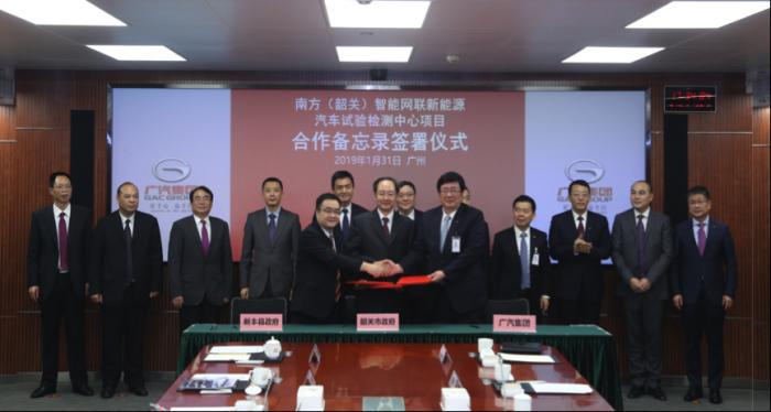 当天,广汽集团与广东韶关市、新丰县签署合作备忘录,计划在韶关市新丰县建设以新能源、智能网联、无人驾驶试验为特色的开放型、综合型的汽车试验中心(暂定名“南方(韶关)智能网联新能源汽车试验检测中心”)。广汽计划将该中心打造成具前瞻性的世界领先水平的开放型、综合性的中国首个兼容传统汽车和新能源智能网联及无人驾驶测试汽车试验中心。