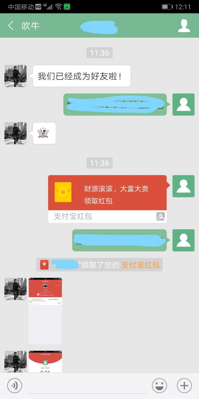 21世纪经济报道1月31日检测发现,“吹牛”APP聊天界面中目前有3种红包功能:支付宝红包、云红包和零钱红包。
